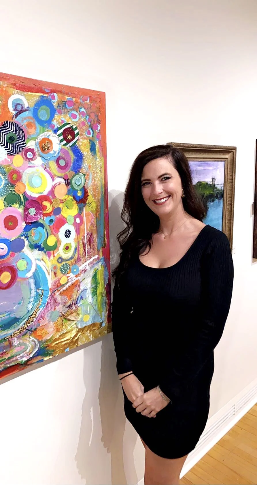 My process is intuitive and immersive. It is often driven by music, instinct, and physical movement. Music plays a huge role in my creative flow, often setting the rhythm and emotional tone of a piece. Paint is layered, scraped, pushed, and pulled as I work, allowing emotion to lead the way rather than strict plans. I’m inspired by bold color relationships, textured surfaces, and the freedom to let a painting evolve organically. There’s something powerful about trusting the process and allowing imperfection to become part of the story.